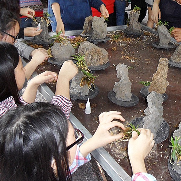 그동안 버려져 있던 돌을 하나의 자원으로 인정하며 시작한 석부작 체험은 돌에 난, 이끼 등 착생식물을 부착하여 새로운 작품을 만드는 것을 의미합니다.